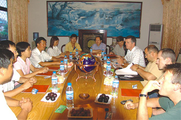 | 公司董事長總經(jīng)理王家安(左四)率專家組對(duì)MD三A水... |