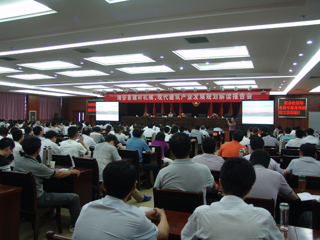 2012年8月3日,海安縣建材機(jī)械、現(xiàn)代建筑產(chǎn)業(yè)發(fā)展規(guī)劃解讀報(bào)告會(huì)在縣政府四樓會(huì)議室隆重舉行。中國建材工業(yè)規(guī)劃研究院高智、郝梅平兩位資深教授就當(dāng)前建材機(jī)械、現(xiàn)代化建筑產(chǎn)業(yè)當(dāng)前現(xiàn)狀和未來發(fā)展方向進(jìn)行分析,準(zhǔn)確定位我縣建材行業(yè)發(fā)展走向,現(xiàn)場解讀建材裝備和現(xiàn)代建筑規(guī)劃報(bào)告。中國建筑材料工業(yè)規(guī)劃研究院院長劉長發(fā),海安縣政府副縣長盧忠平,政協(xié)副主席蔡祝平出席會(huì)議并發(fā)表講話,我縣重點(diǎn)企業(yè)