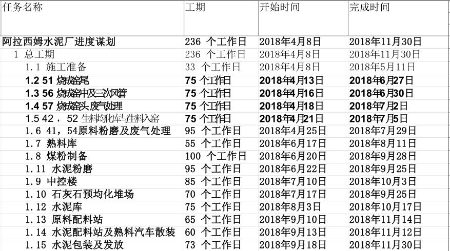 江蘇鵬飛集團(tuán)總包——哈薩克斯坦阿拉西姆水泥廠施工計劃